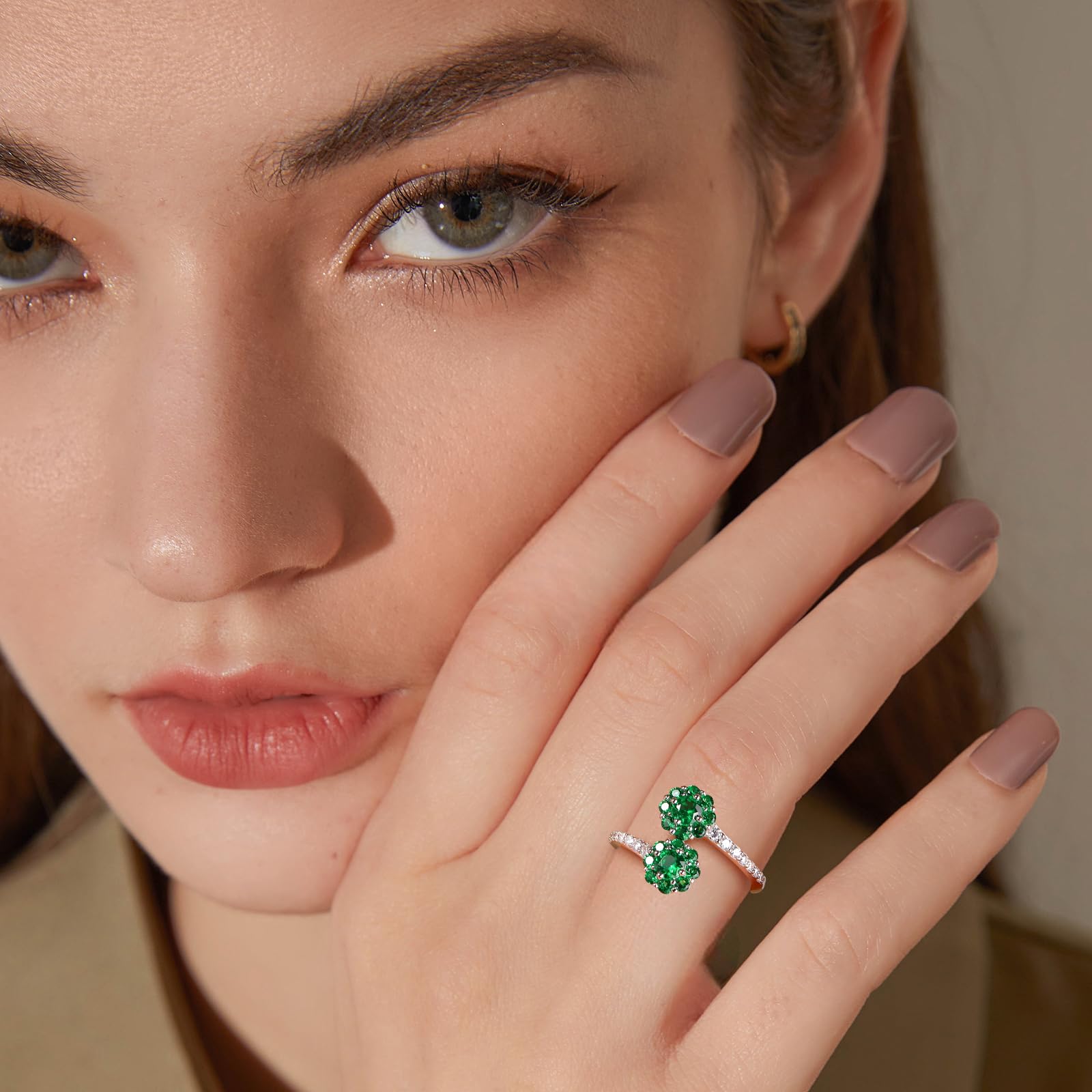 - π EMERALD RINGS FOR WOMEN-This womens ring features an two round cut created green emerald stones, the halo design adds extra sparkle to the overall design, making them even more eye-catching.